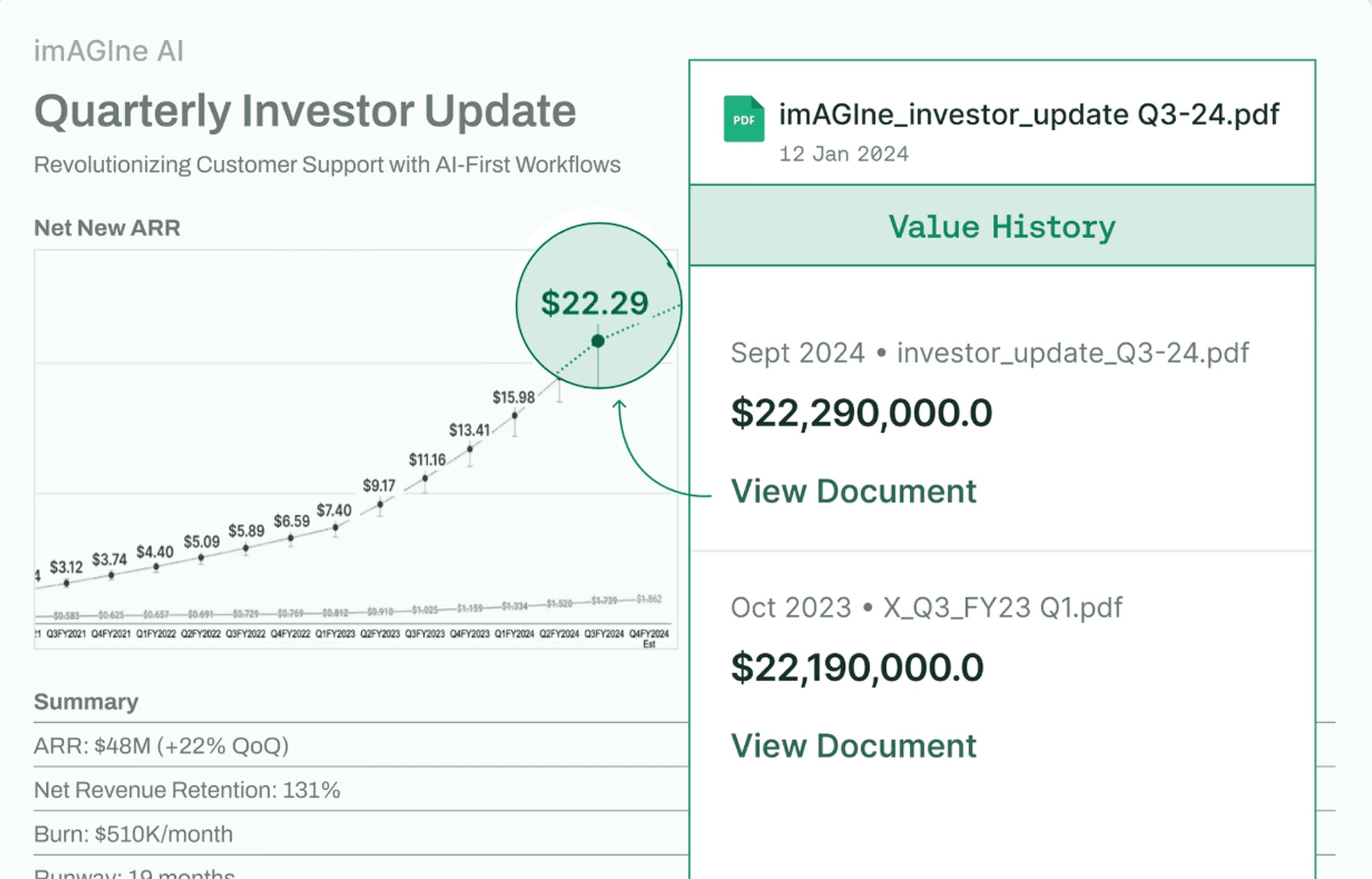 One click to trace any metric back to the source. Automatically track restatements and variations over time and across sources.