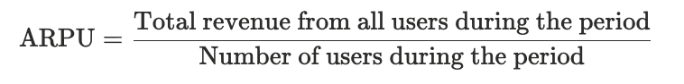 Average Revenue Per User (ARPU) shows how much revenue a company earns on average from each active user during a specific period (usually a month or year). It helps understand how well a business is monetizing its user base.