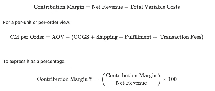 Discounts & Returns: Always calculate CM using Net Revenue (Gross Sales minus discounts and returns) to avoid overstating the margin.