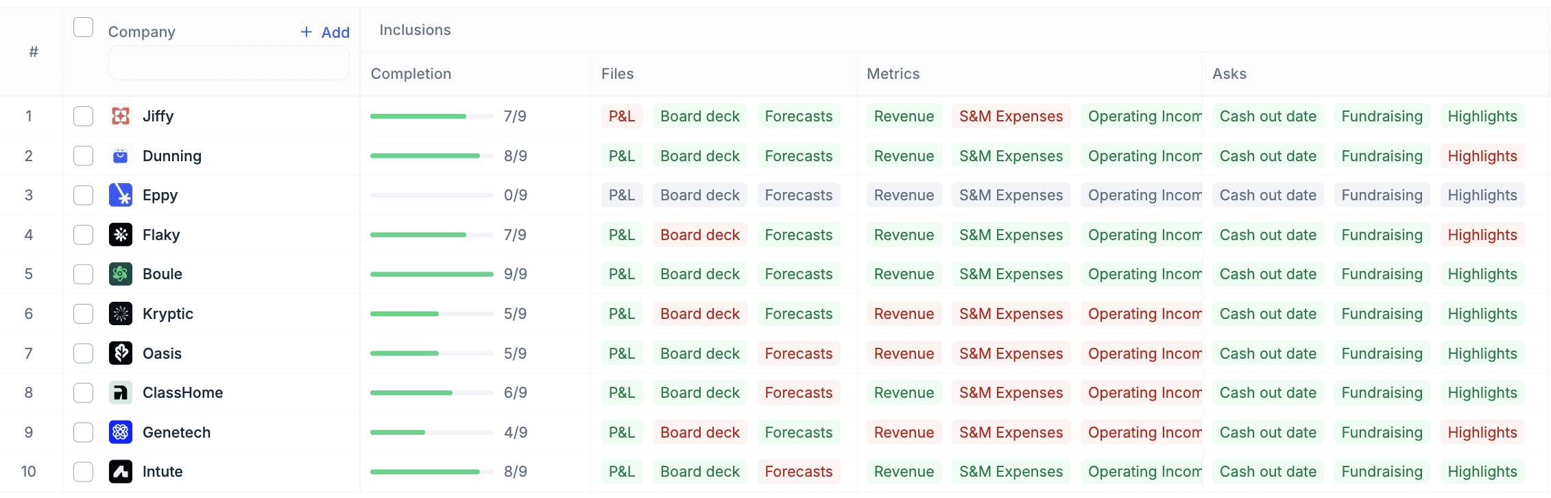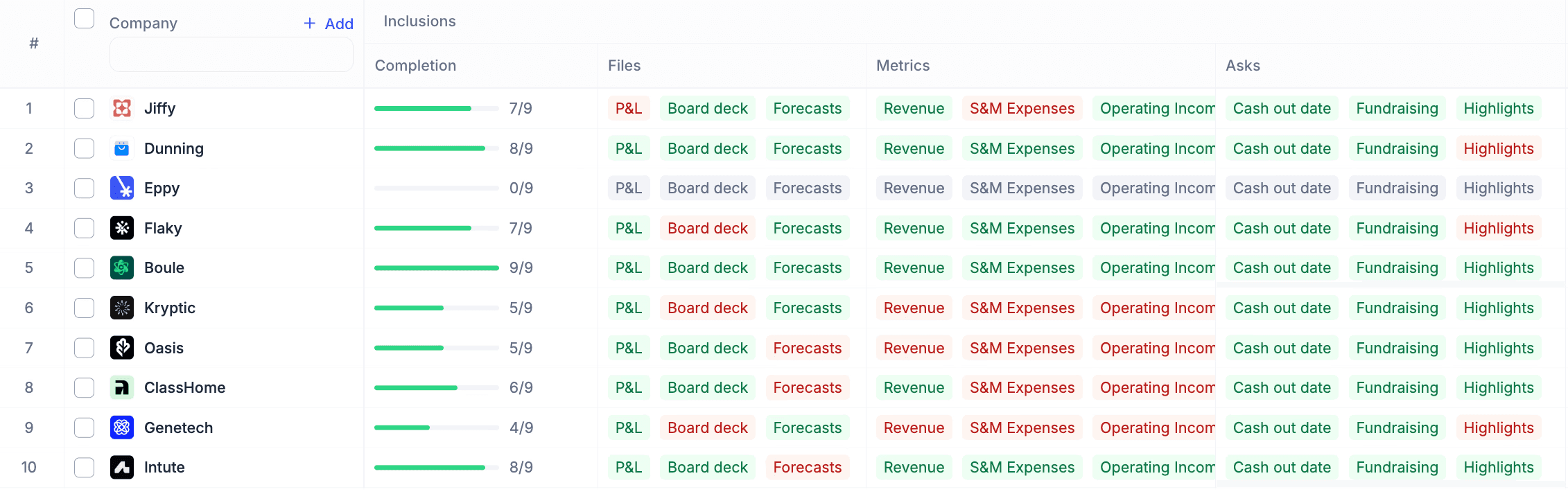 Founder update emails sent to a dedicated address are ingested automatically - no portals or logins.