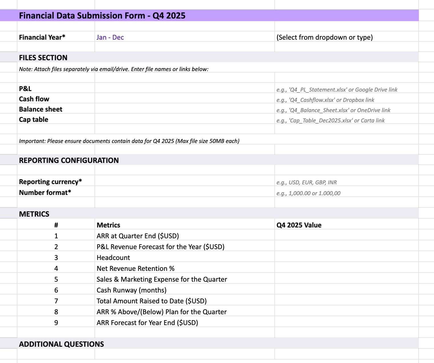 Use templates PortCos already have.