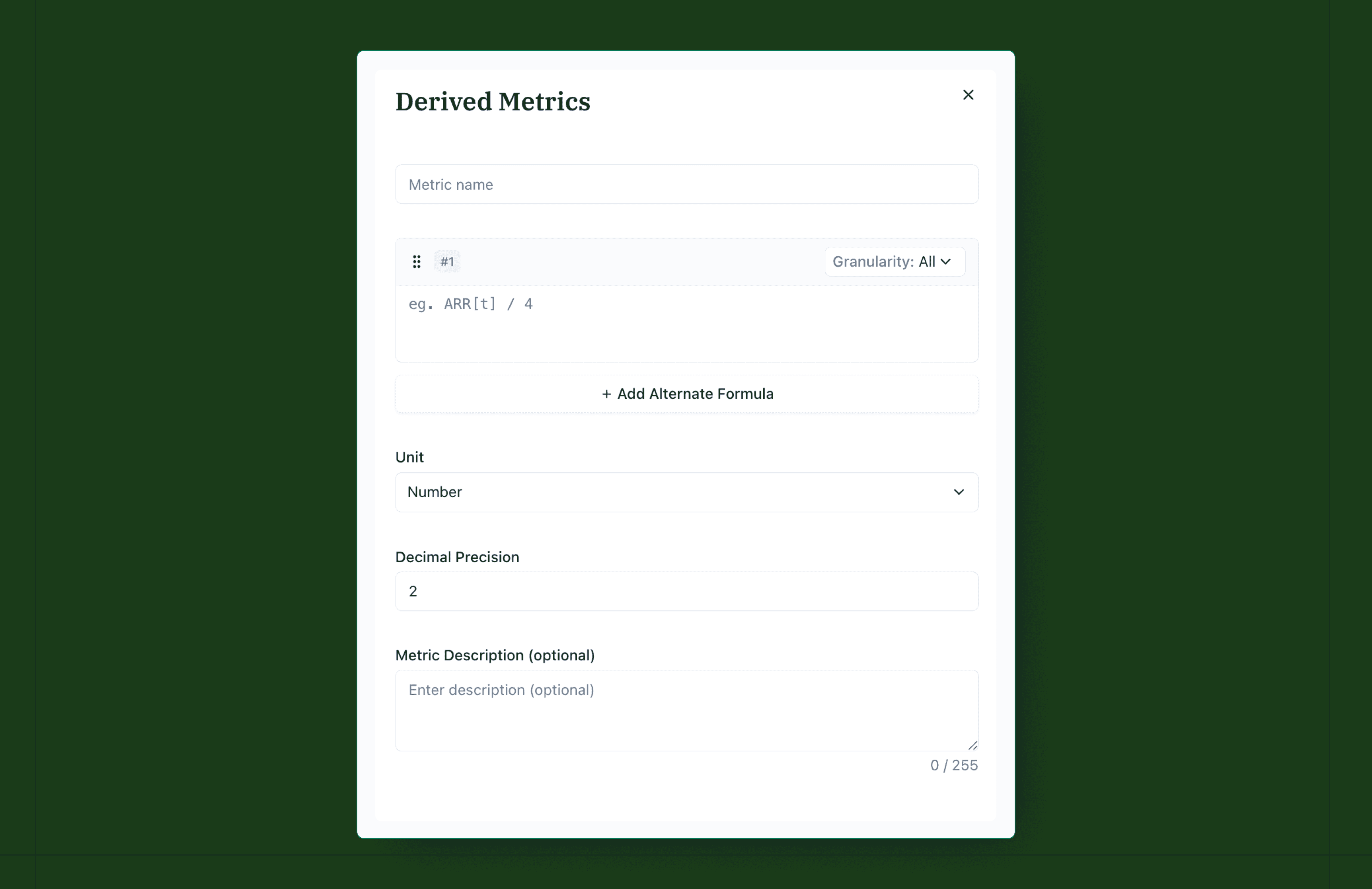 Derived Metrics module lets you define custom metrics using arithmetic formulae, then applies them intelligently across your entire portfolio.